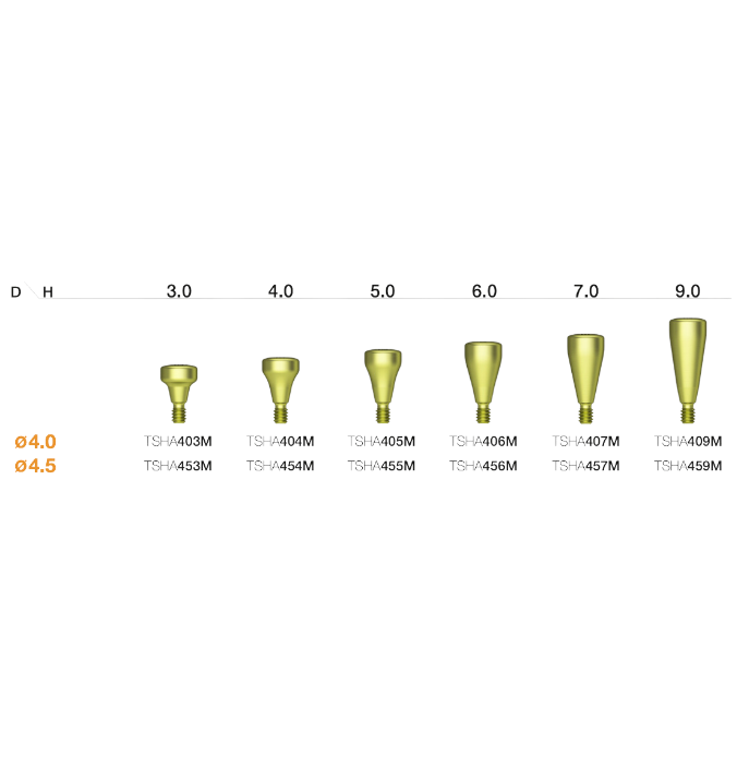 Mini (gul) type, anvendes til implantater med en diameter på Ø3,5 mm eller mindre.Spændes manuelt med en 1,2 mm hex-driver.