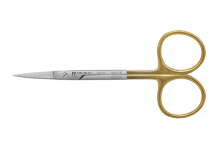 Fremragende saks med carbide kæber for længere holdbarhed og bedre klippe effekt både til suturen og fine gingiva justeringer.
