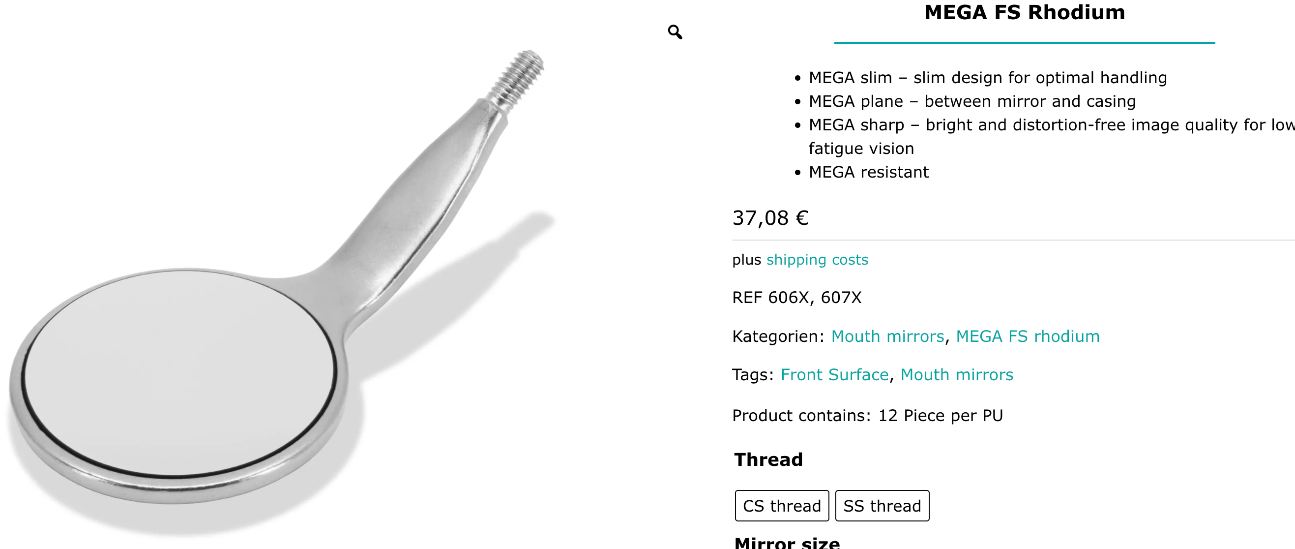 Mundspejl Mega FS Rhodium, pakning med 12 stk.