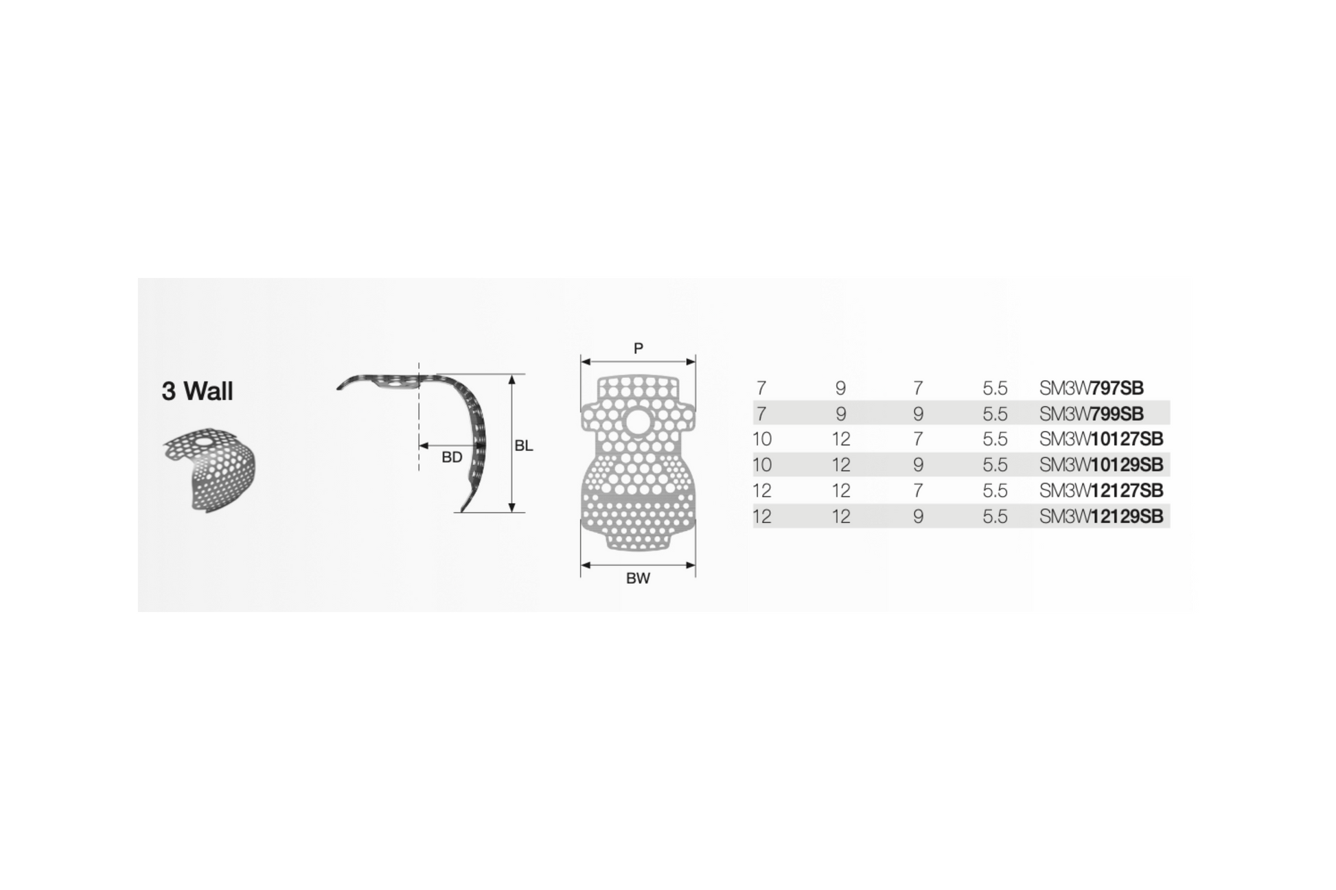 P = Proximal x BW = Buccal bredde x BL = Buccal længde x BD = Buccal distance
