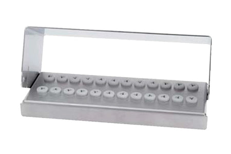 Borholder i rustfrit stål til 24 bor med grå silikone plugs