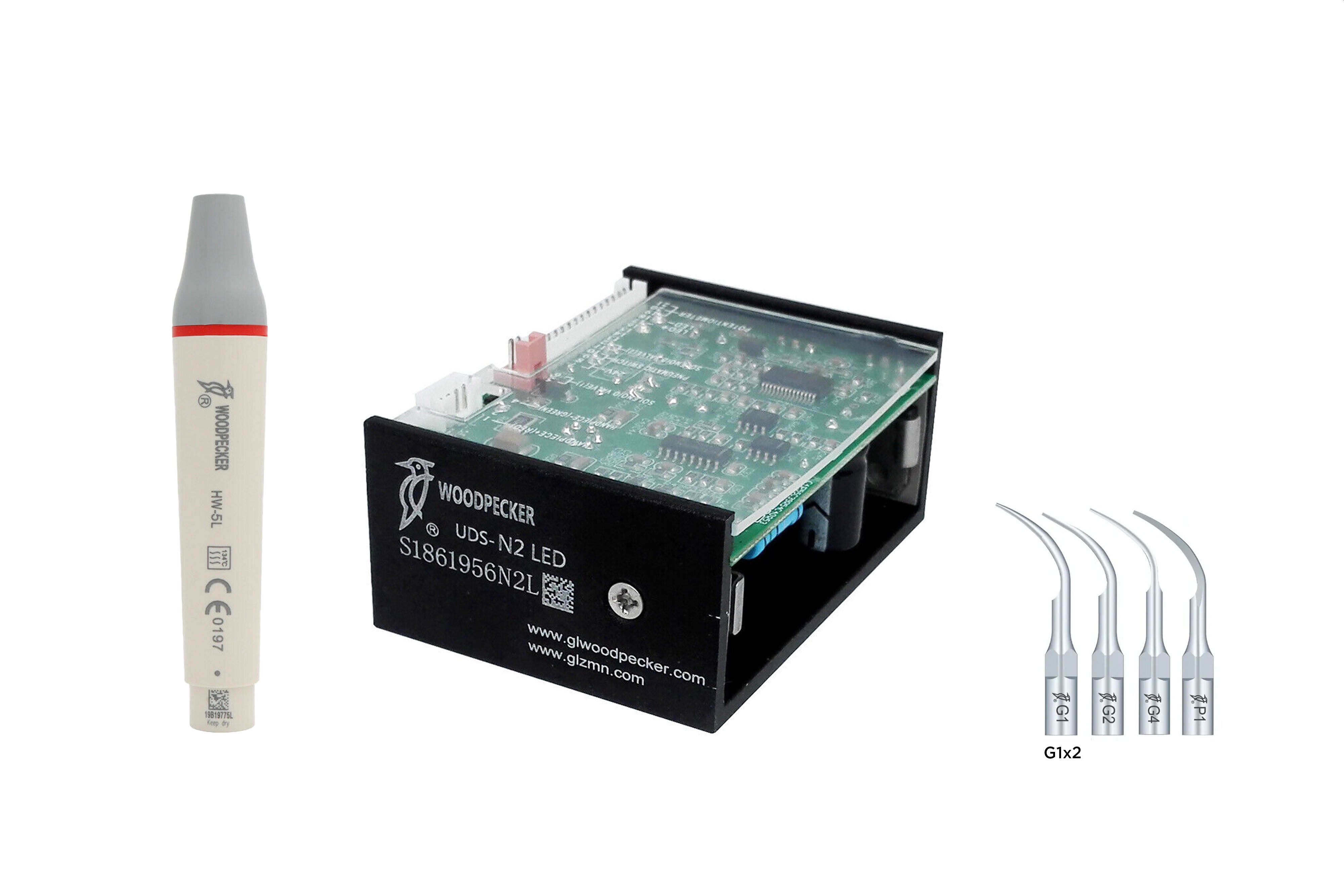 Der medfølger elektronikenhed, kabel til håndstykke, håndstykke med LED og 5 stk. spidser.